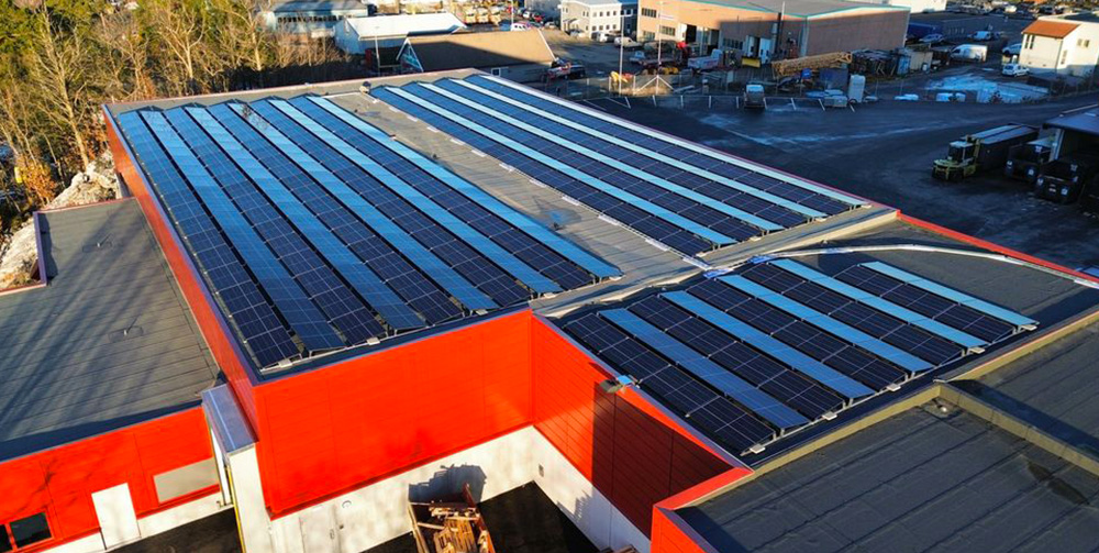 249 kWp solar system to supply multiple businesses. The project is installed on the building where Greenstat Energy solar department has its storage and office facility in Stoa, Arendal.